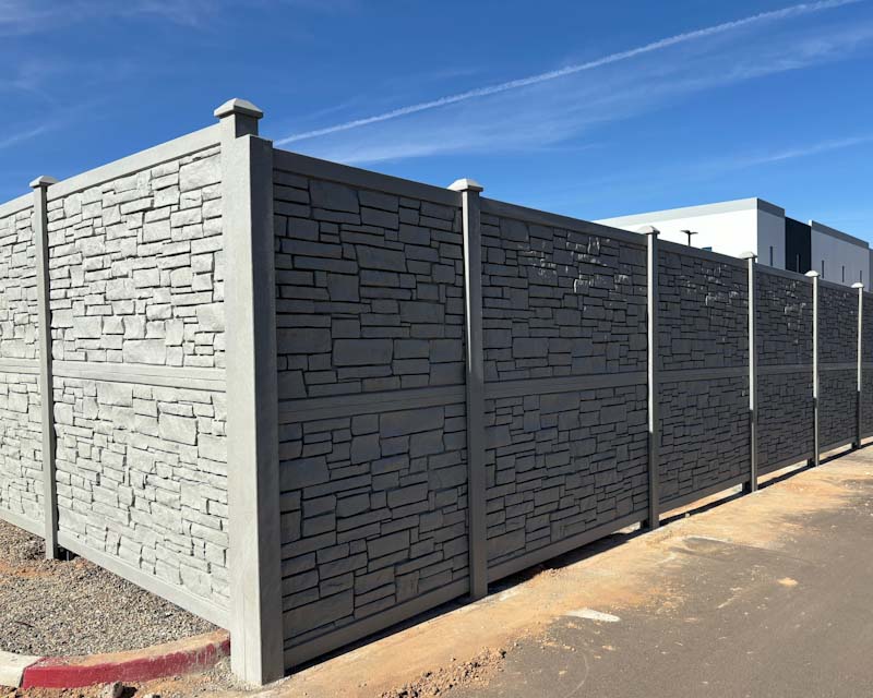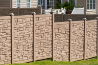 SimTek is a simulated stone and wood fencing which also gives it the name stone/wood like fence. The molds to make the fencing panels used real stone and wood to deliver the most authentic look available. The EcoStone or Allegheny pattern is made to simulate stone and come in 5 different colors: beige, brown, dark brown, gray and dark gray. The Sherwood or Ashland pattern simulates wood and comes in 4 different colors: brown, red cedar, gray and dark gray.